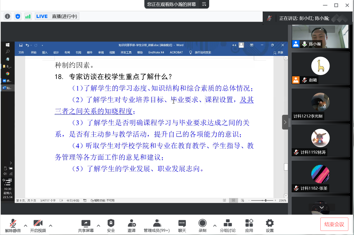 彭小红对专业认证指标体系做具体指导,对培养目标、毕业要求、课程体系等进行深入分析和重点点评,引导同学们结合自身实际深刻领会指标要素,以积极的姿态投入到专家进校的访谈工作准备中。