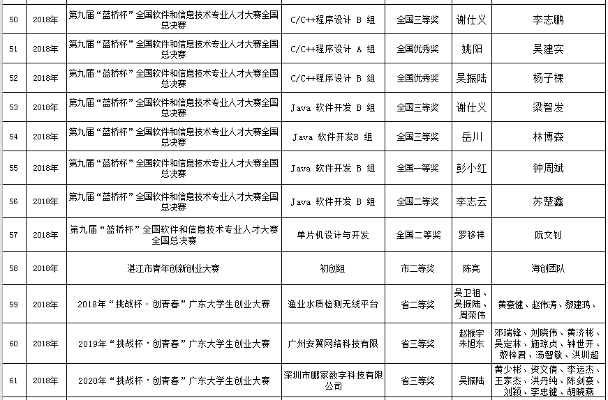 DB真人旗舰员工2018年参赛获奖情况一览表