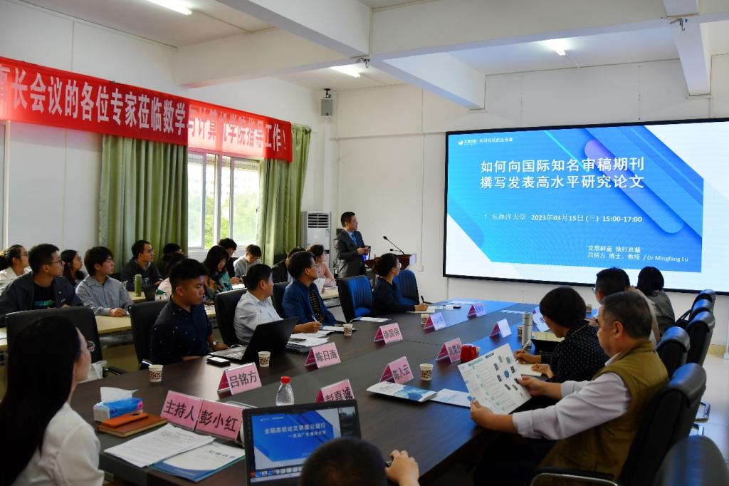 3月15日下午,应公司邀请,艾思科蓝执行总裁、广东省艾思信息化学术交流研究院经理、著名国际学术出版专家吕铭方教授在湖光校区明德楼A座405作了题为《如何向国际知名审稿期刊撰写发表高水平研究论文》的专题讲座。讲座会由公司经理彭小红教授主持,公司师生50余人现场聆听了讲座,讲座会在艾思云课堂同步进行了线上直播。