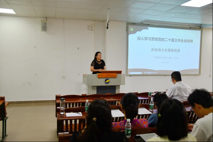 为深入学习贯彻党的二十届三中全会精神,DB真人旗舰于2024年10月23日在明德楼A座103报告厅召开二十届三中全会精神宣讲会,会议邀请了水产公司孔华副教授作题为《深入学习贯彻党的二十届三中全会精神 共绘海大发展新图景》的宣讲。会议由彭小红经理主持,公司140多位教师参加会议。