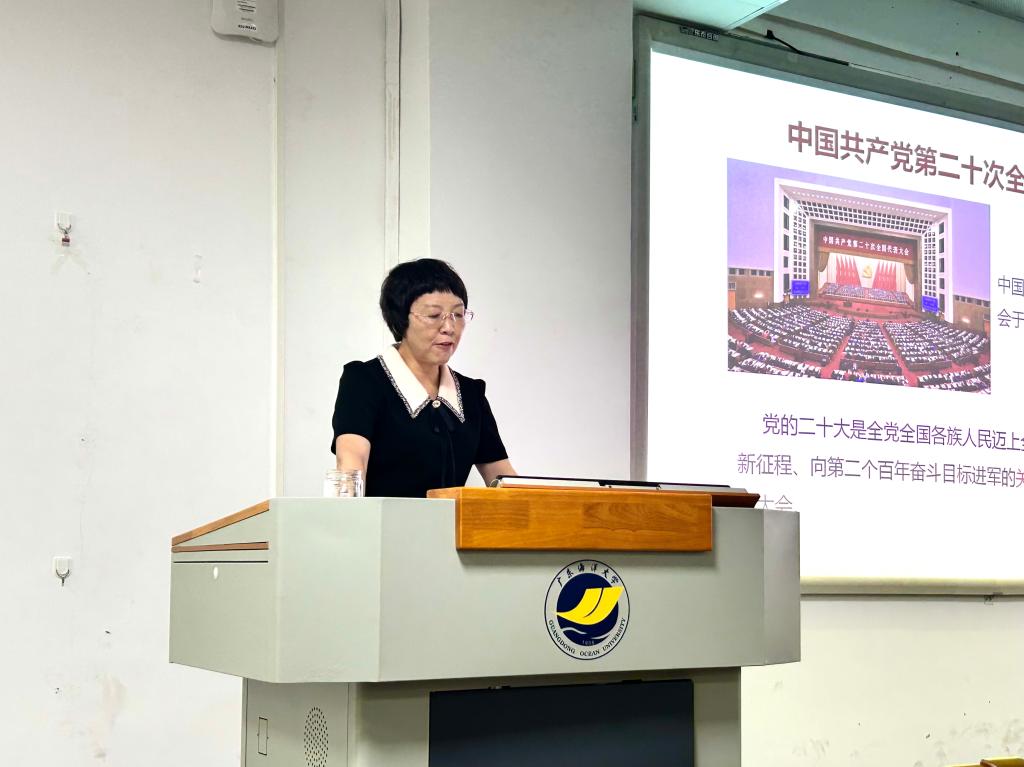 周荣伟指出,中国式现代化是人口规模巨大的现代化,是全体人民共同富裕的现代化,是物质文明和精神文明相协调的现代化,是人与自然和谐共生的现代化,是走和平发展道路的现代化。她围绕党的二十大报告提出的中国式现代化特征,引用大量数据和案例,从“二十大报告新理论新观点”、“现代化与中国式现代化”、“中国式现代化特征解析”和“中国式现代化本质要求”四个方面给同学们做了深入浅出的讲解。