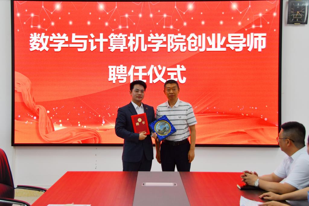 吴宏杨和甘华是计算机科学与技术专业优秀员工。签约仪式上,经理彭小红和吴宏杨签订“宏杨创新奖学金”协议,党委书记谢仕义为两位员工颁发公司创业导师聘书。