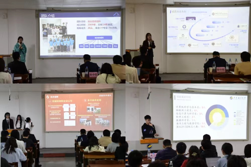 接着,公司创新创业实践基地的十一支优秀科技团队进行了总结汇报。各团队分别从科技竞赛获奖、学术科研、产品开发及技术创业等四个方面进行了总结汇报,内容涉及了物联网应用、数据挖掘、自动控制、人工智能等技术。这些成果在海洋领域、农渔业、工厂自动化及民用消费等方面得到了相关应用。现场嘉宾们对各团队的汇报提出了建议和指导并进行了打分。汇报团队的精彩演讲不时获得现场观众的阵阵掌声,各创业团队呈现的最新科技作品让现场嘉宾和同学们啧啧称赞。汇报结束后,现场的嘉宾领导对各团队的创新创业成果给予了高度评价。