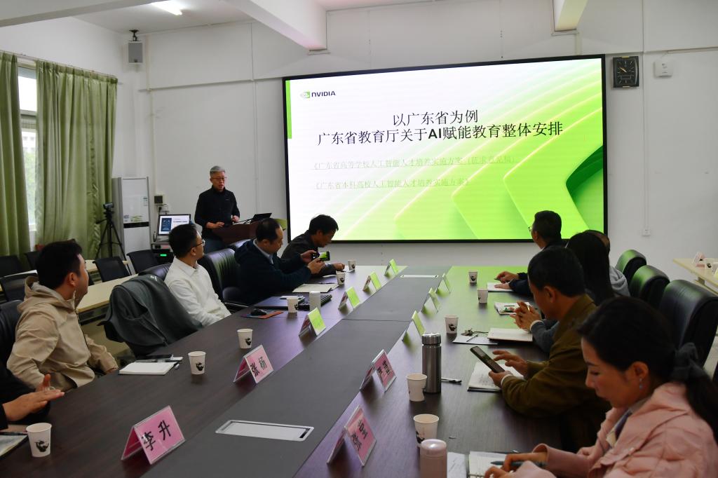 3月6日上午,应DB真人旗舰邀请,英伟达(中国)教育线总监郭瑞春、广州晟烨智算CEO陈煜楠一行来校出席DB真人旗舰人工智能公司产品研讨会。研讨会由DB真人旗舰经理彭小红主持,教务部部长严谨、现代教育技术中心主任张光亚、DB真人旗舰副经理余应淮、各教学系正副主任、计算机公共教学部全体教师参加了研讨会。