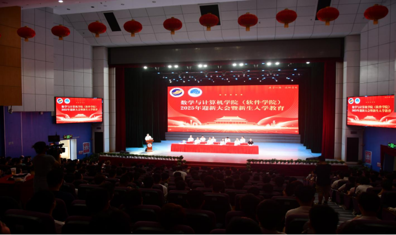 在迎新大会环节,激昂的国歌旋律拉开序幕,全体师生肃立合唱,爱国情怀与责任担当在会场中激荡。随后,经理彭小红围绕“学科领航+思政育人”主题致辞,不仅解读了数学与计算机学科在人工智能时代的核心价值——是重构世界的“通用技术”、驱动未来的“核心引擎”,更提出“固本强基、知行合一、跨界融合、修身立德”四点期望,为新生解答“如何学习、如何求真、如何打造核心竞争力”的时代之问,叮嘱新生既要做技术浪潮的“弄潮儿”,更要做有底气、有骨气、有志气的新时代青年。