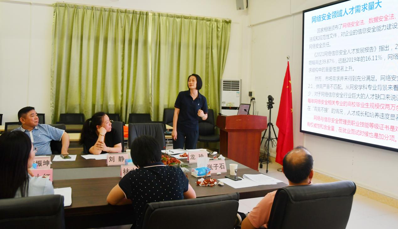 接着分别由李振坤教授介绍“粤港澳大湾区工程团队格互认”,郭嵩山教授介绍“中小学信息奥赛的发展及现状”,黄轩秘书长介绍“省学会关于青少年信息学科团队普及的政策”,刘静部长为大家作“促进中小学信息学科的团队普及提高和筹建中小学信息学科的基地”专题汇报。 杨惜爱部长介绍“网络与信息安全管理员”培训考证相关事宜。最后参会人员详细讨论了各个议题的详细实施方案。