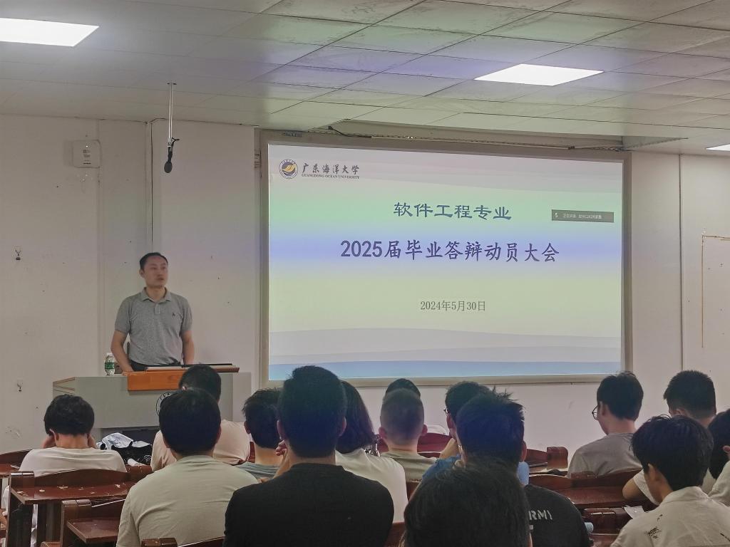 为帮助2025届毕业生更好地了解专业发展趋势和毕业设计要求,同时强调文明离校的重要性,2025年5月30日下午,软件工程系于明德楼A1 103会议室举办了毕业答辩动员大会暨文明离校教育讲座。此次讲座由软件工程系主任陈小瀚和辅导员张艺分别主讲,全体软件专业2025届毕业生参加。