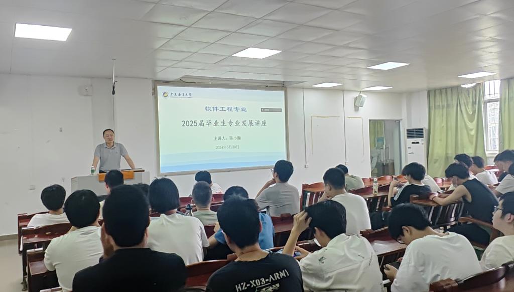 为帮助应届毕业生更好地了解软件工程行业的发展现状和未来趋势、做好专业发展规则,2025年5月30日下午,软件工程系在明德楼A1 103开展软件工程专业毕业生专业发展讲座。讲座由软件工程系主任陈小瀚主讲,全体软件工程专业2025届毕业生参加。