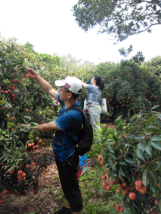校车在乡村小道停了下来,一声令下,采摘荔枝的队伍浩浩荡荡进入荔枝园,以小组为单位进行了摘荔枝竞赛。哪个小组在规定时间内摘得最多为胜。尽管烈日炎炎,大家热情高胀。荔枝树下,到处是人们忙于摘荔枝的身影。